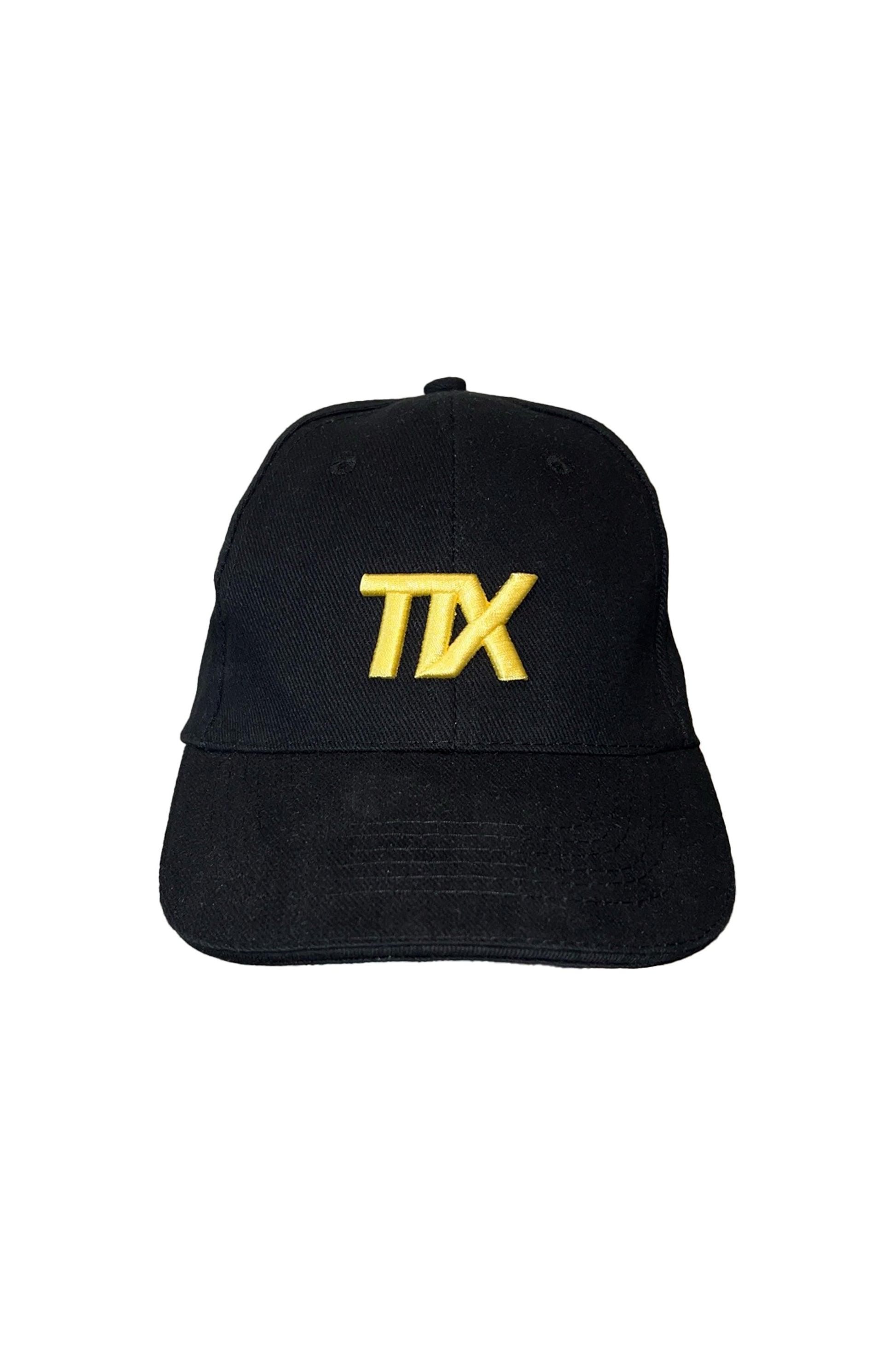 Sort caps med 3D-brodert TIX logo i gullfarge.